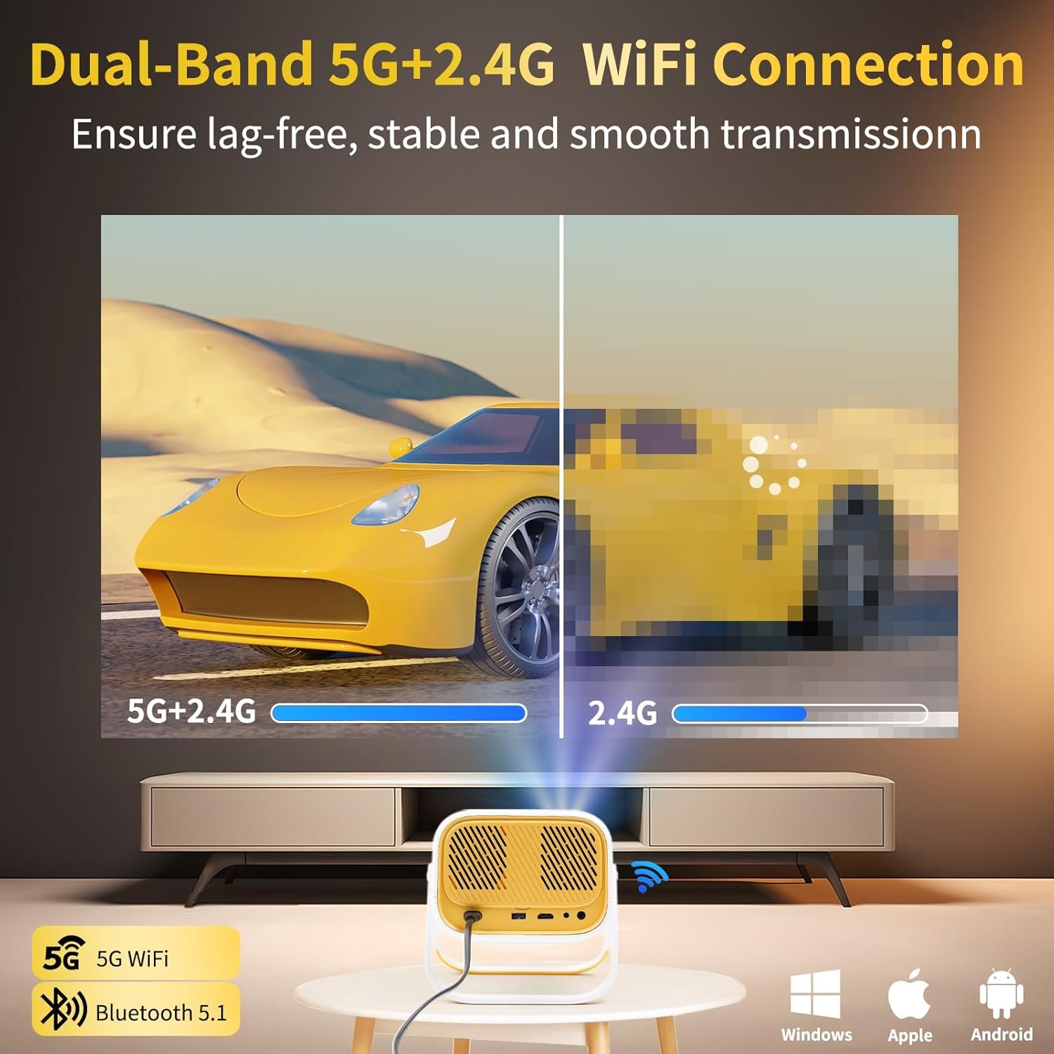 [360°Adjustable Stand] Mini Projector with WiFi and Bluetooth